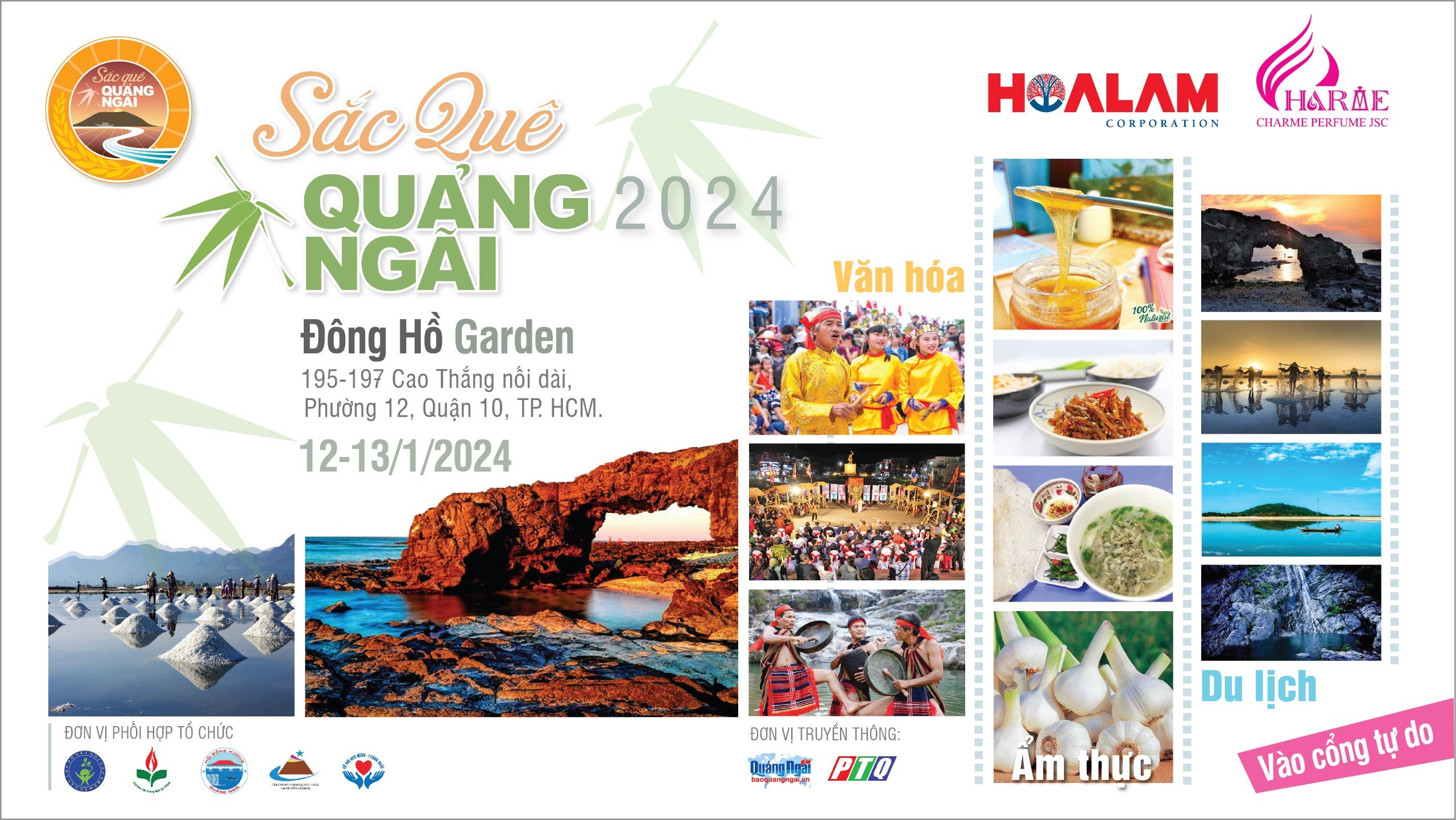 Chương trình sẽ chính thức diễn ra trong 2 ngày: 12&13/01/2024, tại Đông Hồ Garden (địa chỉ: 195 – 197 Cao Thắng nối dài, P.12, Q.10, TP.HCM). Đây là chương trình mang tính chất lễ hội văn hóa, ẩm thực & du lịch, thể hiện bản sắc vùng đất và con người Quảng Ngãi.
